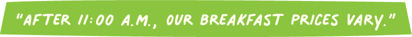 Mensaje "¡Disfruta de nuestros desayunos todos los días de 7 a 11 a.m.!